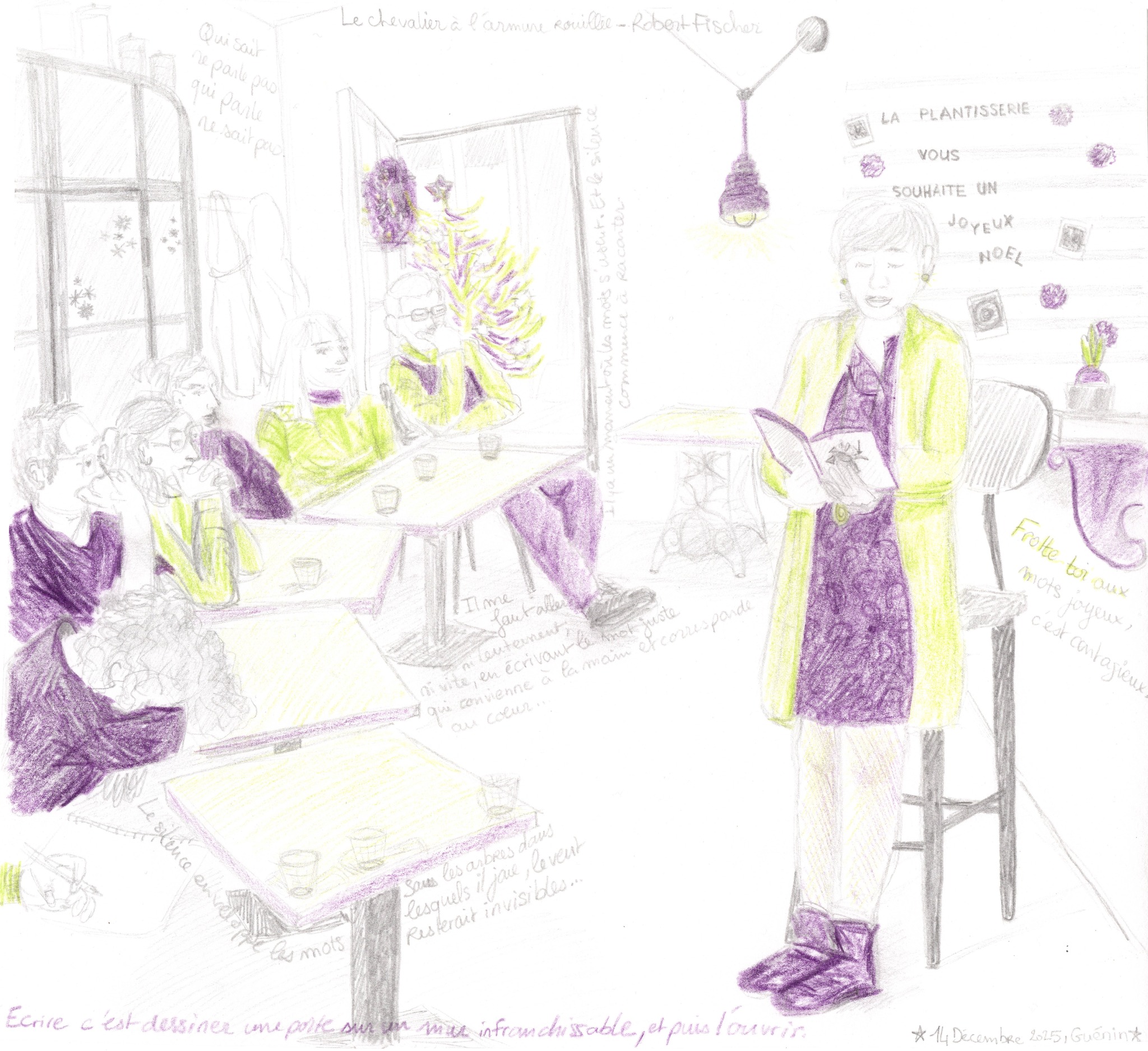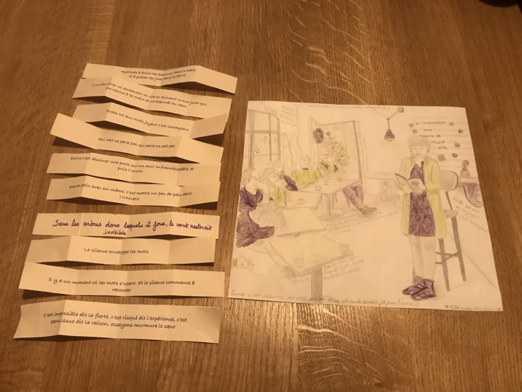 Merci à Marie Lemarchant pour sa jolie illustration de ce moment de concentration, de reflexion, d’écoute attentive (et non Anne-Cécile au premier plan ne dort pas