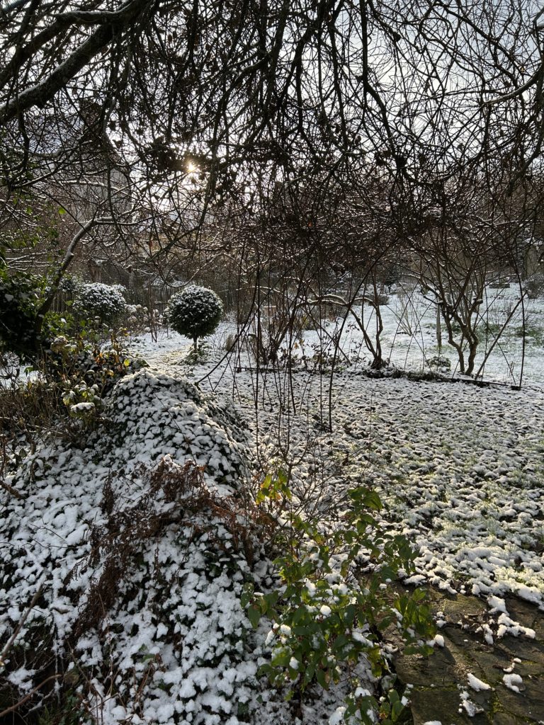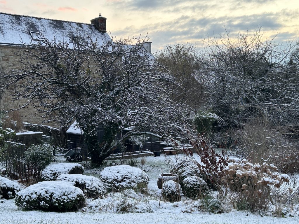 Quelle belle surprise de découvrir le jardin sous la neige en ce matin de Noël…